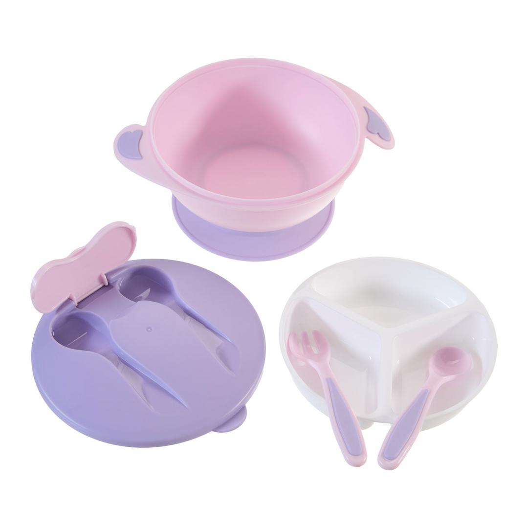 Bol compartimentat cu ventuza antialunecare si capac cu lingurita cu furculita, mov