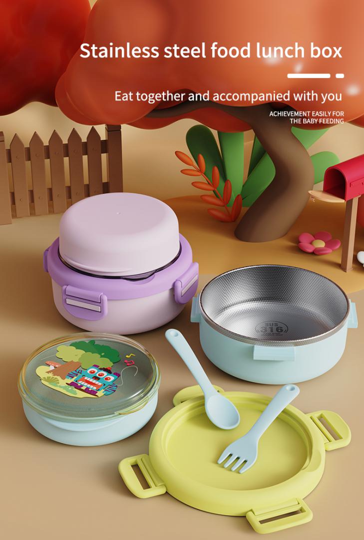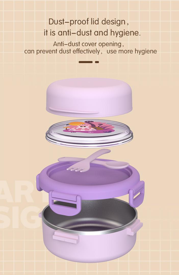 Caserola termica cu lingurita si furculita, mov, U-Grow