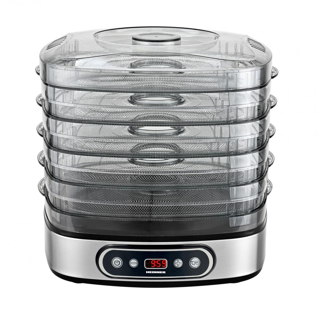 DESHIDRATOR DE FRUCTE SI LEGUME HEINNER FreshDehydrate HFD-K380SSBK,PUTERE: 320-380W, ECRAN LED & CONTROL ELECTRONIC, 5 TAVI DIN OTEL INOXIDABIL, TEMPERATURA: 35-70C, TIMER: 30 MIN – 19.30H, PROTECTIE IMPOTRIVA SUPRAINCALZIRII, INALTIME REGLABILA, DECORATIUNI DIN INOX