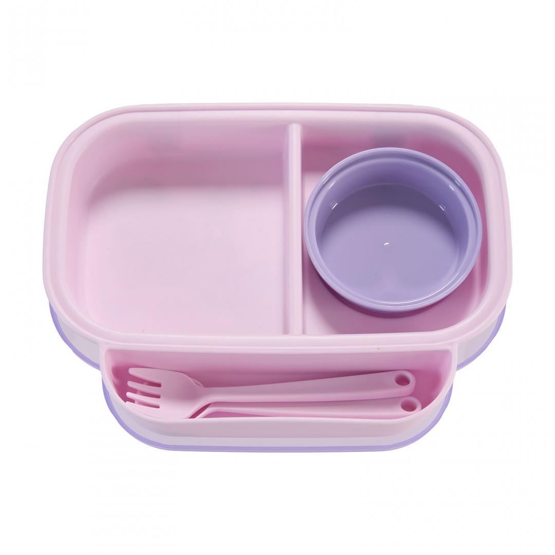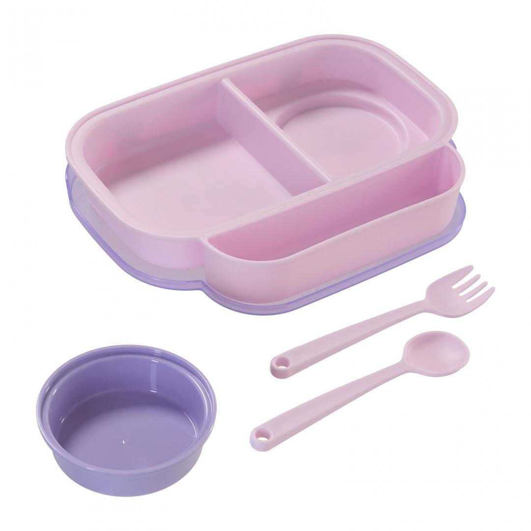 Farfurie compartimentata cu capac si lingurita si furculita, mov