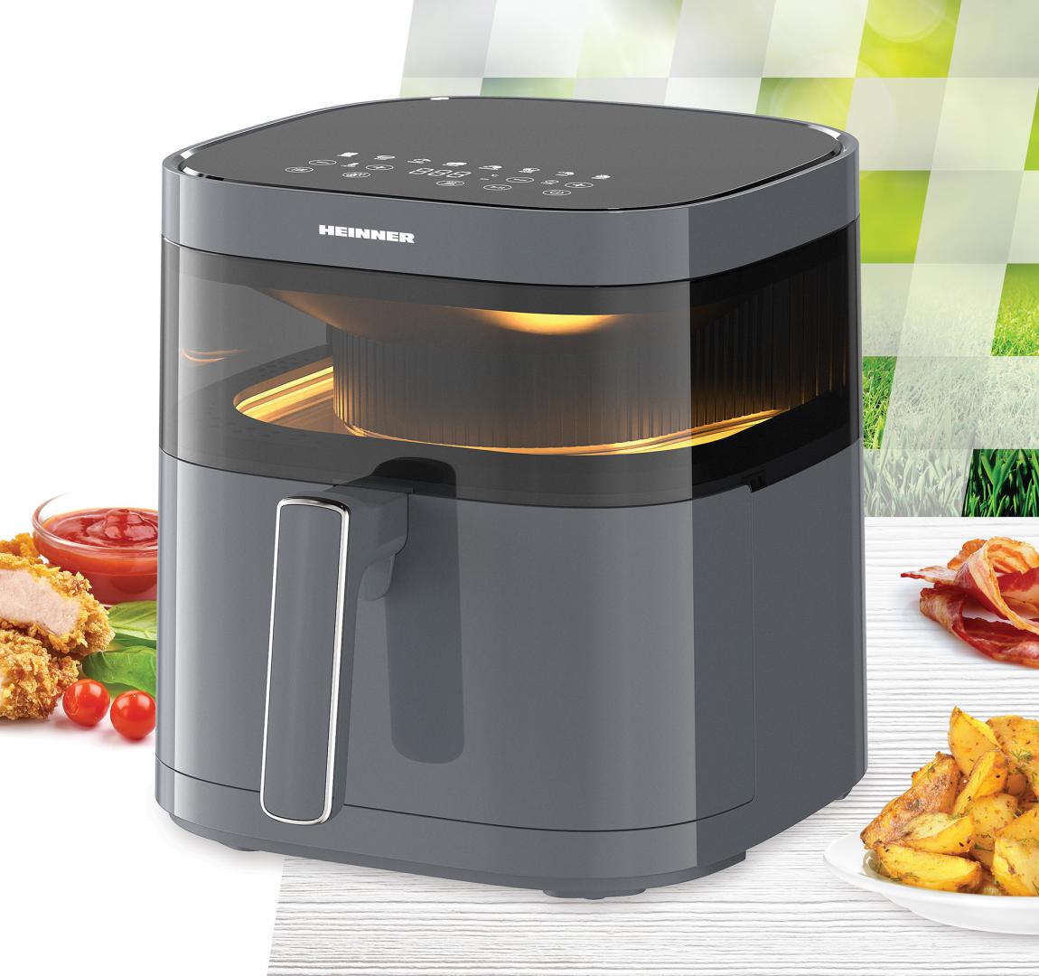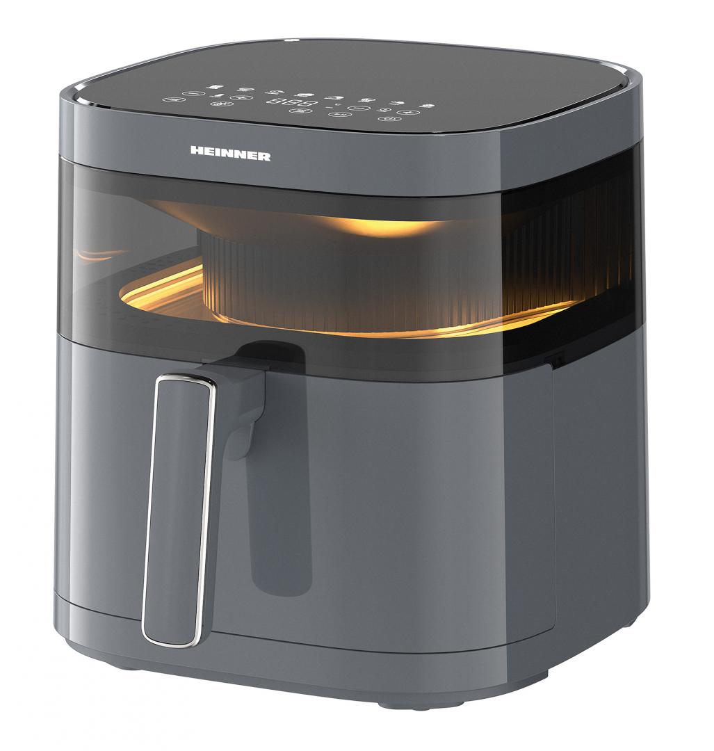 FRITEUZA CU AER CALD HEINNER DualHeat HAF-B6GRY17LG, 1700W, CAPACITATE COS: 5.7L, DISPLAY DIGITAL, INCALZIRE DUBLA, CAVITATE METAL, TEMPERATURA: 80-200°C, TIMER: 60MIN, 8 PROGRAME PRESETATE, COS DETASABIL, FEREASTRA SUPRAVEGHERE, LUMINA INTERNA, AUTO-OPRIRE, GRI ANTRACIT