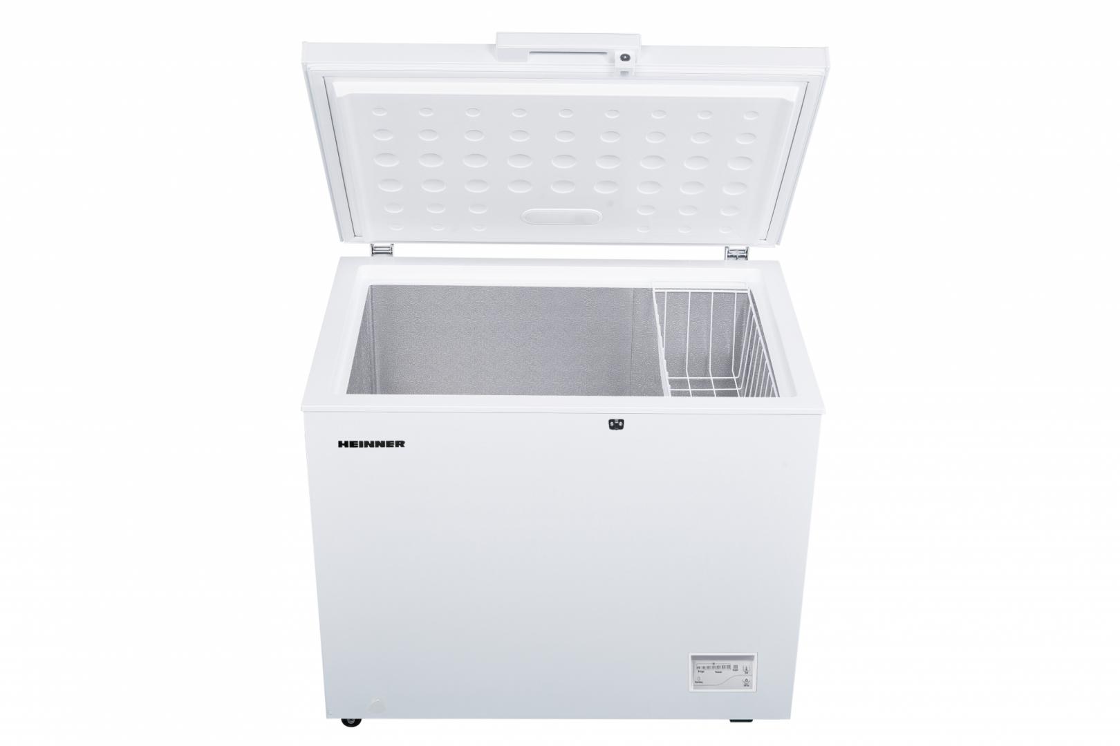 Lada frigorifica Heinner HCF-246CNHE++, convertibila, clasa energetica: E, capacitate totala: 246L, control electronic, rezistenta la frig (opereaza la temperaturi scazute: -15°C), rezistenta la variatii de tensiune 175~255V, display rezistent la apa, lumina LED, functie congelare rapida, 1 cos, decongelare manuala, role pentru transportare usoara, capacitate de congelare: 14kg/24h, dimensiuni (WxDxH): 95.4 x 61.6 x 84.5 cm, culoare: alb