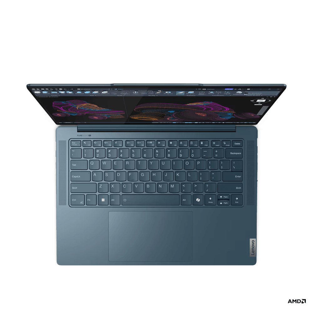 Laptop Lenovo Yoga Pro 7 14AHP9, 14.5" 3K (3072×1920) IPS 400nits Anti-glare, 100% P3, 100% sRGB, 120Hz, Eyesafe®, Dolby Vision®, TCON, AMD Ryzen™ 7 8845HS (8C / 16T, 3.8 / 5.1GHz, 8MB L2 / 16MB L3), video Integrated AMD Radeon™ 780M Graphics, RAM 16GB Soldered LPDDR5x-6400, Memory soldered to systemboard, no slots, dual-channel, 16GB soldered memory, not upgradable, SSD 1TB SSD M.2 2280 PCIe® 4.0×4 NVMe®, no ODD, No Card reader, 4 stereo speakers, 2W x2 (woofers), 2W x2 (tweeters), optimized with Dolby Atmos®, Amplifier (AMP), FHD 1080p + IR with E-shutter, No Onboard Ethernet, WLAN Wi-Fi® 6E, 802.11ax 2×2, Bluetooth 5.3, Non-WWAN, No Fingerprint Reader, Porturi: 1x USB-A (USB 5Gbps / USB 3.2 Gen 1), Always On, 1x USB-C® (USB 10Gbps / USB 3.2 Gen 2), with USB PD 3.0 and DisplayPort™ 1.4, 1x USB-C® (USB4® 40Gbps), with USB PD 3.0 and DisplayPort™ 1.4, 1x HDMI® 2.1, up to 4K/60Hz, 1x Headphone / microphone, 100W USB-C® Slim (3-pin), Baterie Integrated 73Wh, Backlit, English, Tidal Teal, Greutate 1.49 kg, Dimensiuni 325.5 x 226.49 x 16.6 mm (12.81 x 8.92 x 0.65 inches), 3Y Premium Care with Onsite upgrade from 2Y Depot/CCI (CPN), Accesorii Pen Not Supported, Free DOS