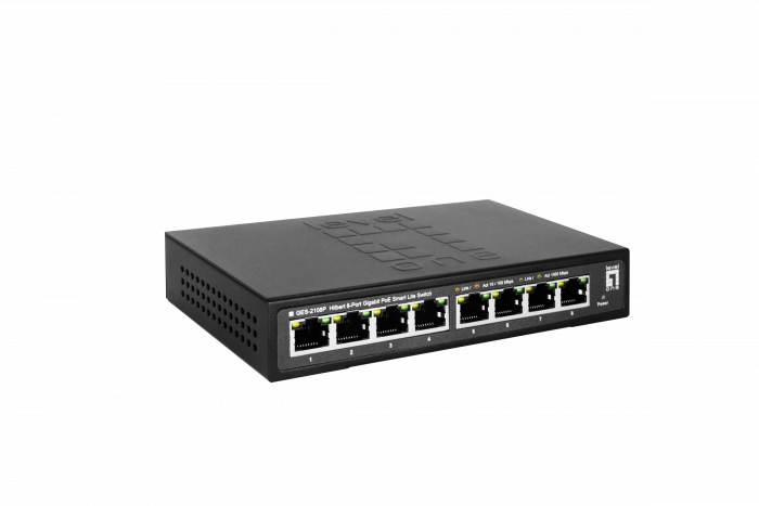 LevelOne GES-2108P Hilbert 8-Port Gigabit PoE Smart Lite Switch, 802.3at/af PoE, 8 PoE Outputs, 112.8W PoE Power Budget, 160 x 95 x 29 mm