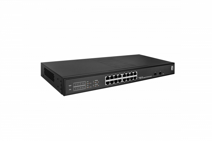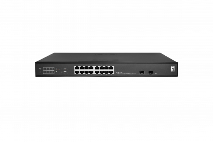 LevelOne GES-2118P Hilbert 18-Port Gigabit PoE Smart Lite Switch, 16 PoE Outputs, 2 x Gigabit SFP, 802.3at/af PoE, 230W PoE Power Budget, 440 x 190 x 44.5 mm