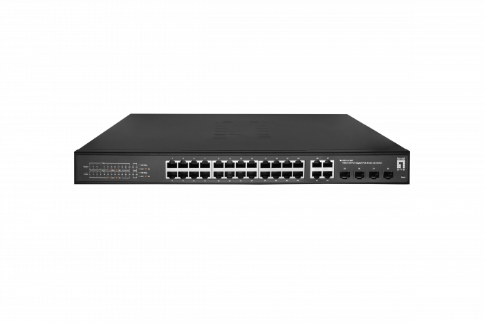 LevelOne GES-2128P Hilbert 28-Port Gigabit PoE Smart Lite Switch, 24 PoE Outputs, 4 x Gigabit SFP/RJ45 Combo, 802.3at/af PoE, 380W PoE Power Budget , 440 x 290 x 44.5 mm
