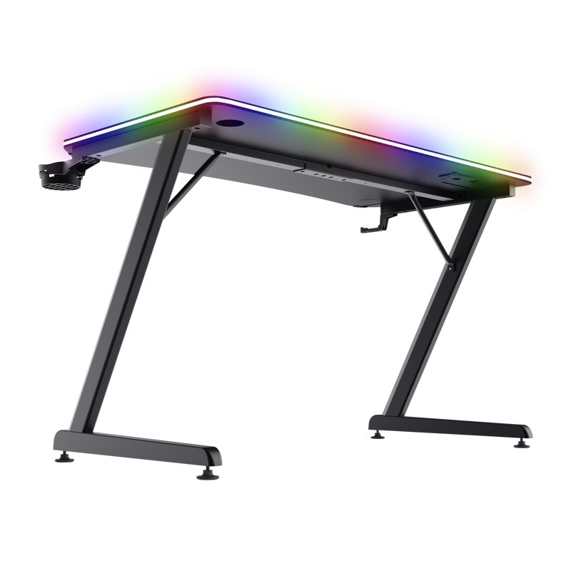 Birou gaming Trust GXT 710 Luminus Pro, iluminare RGB, greutate maxima suportata 150 kg, potrivita pentru consola gaming, lampa, laptop, monitor, smartphone, smartTV, pc, tableta, negru